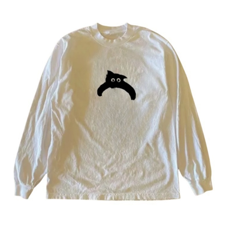 Playful Oversize Cat Casual Long Sleeve