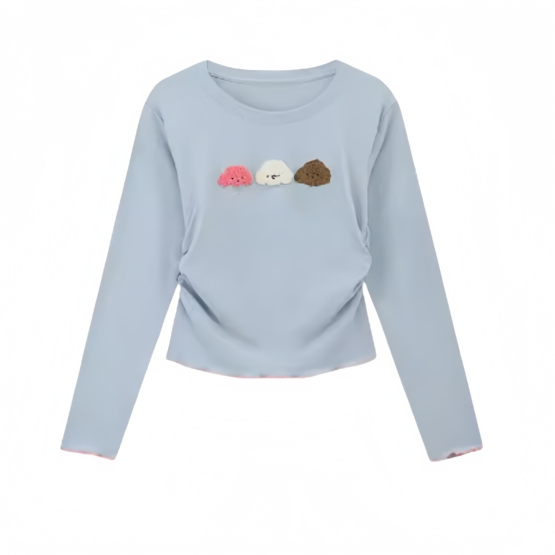 Street Style Cartoon Flocked Ruffle Long Sleeve